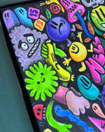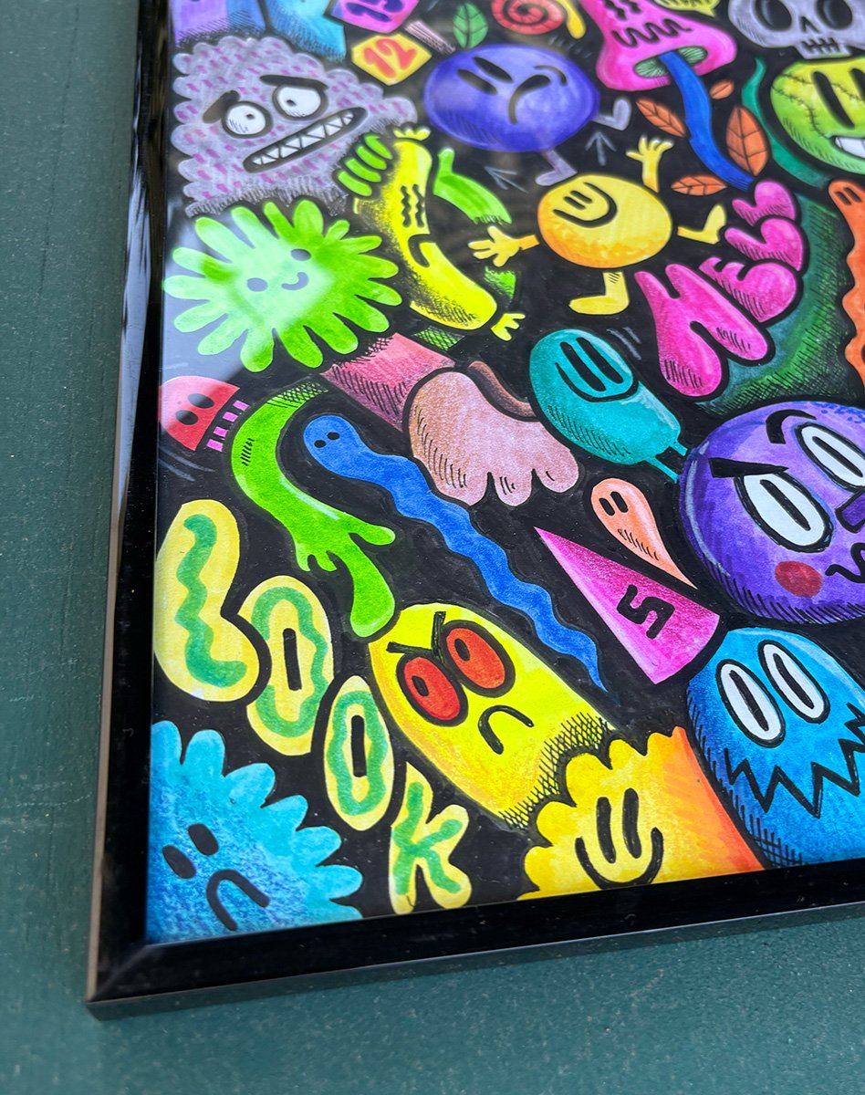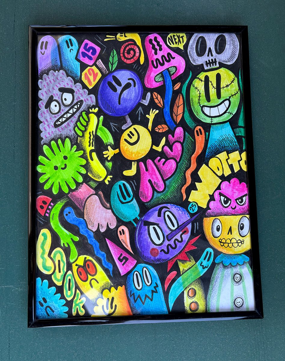 An assortment of pens, pencils and stuff from my kids art supply box on paper.